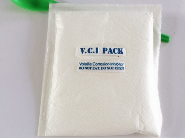 4、 袋粉干法使用時(shí),應(yīng)將粉末袋置于VCI有效作用距離內(nèi),將粉末袋放置或懸吊于被防銹物品的上部空間。