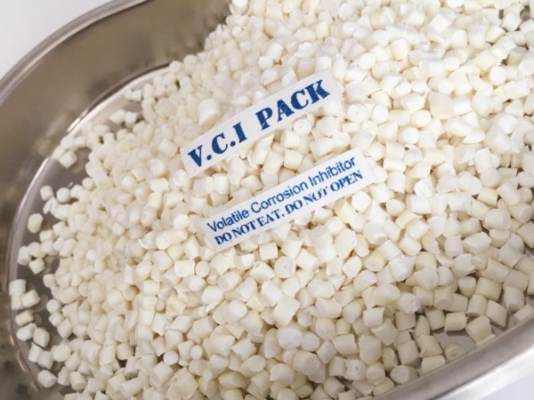 配比比例: 在通常情況下,VCI防銹母粒的添加量為塑料粒子的2%。(色母粒添加比例不能高于防銹母粒含量的10%)通常情況下防銹膜的標(biāo)準(zhǔn)厚度為100μ.